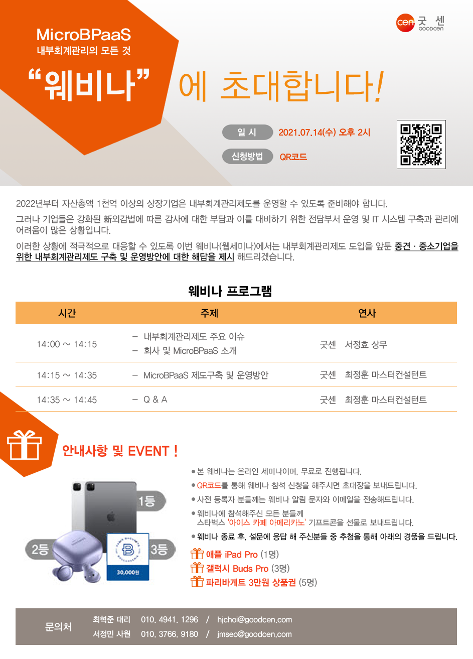 내부회계관리의 모든 것(MicroBPaaS) 웨비나에 초대합니다!